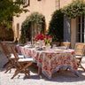 Verdant and lush, the Jardin collection is inspired by the luxuriant, loosely tended gardens of Southern France. The vibrant watercolors of this French linen will enliven any room or outdoor table with a sense of understated beauty and style, whether in spring, summer, or beyond. This tablecloth — available in round, square, and rectangle shapes —  has been carefully hand printed by skilled artisans using a time-honored technique, resulting in a singular piece of craftsmanship.