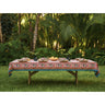 Refreshing spring blossoms! Cheer up the family table with this beautiful jewel toned floral block printed tablecloth featuring teals, pinks and oranges. Our blossoms collection is the perfect way to refresh your table for spring and summer--mix and match for an effortless look that will brighten up your home!