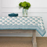 Transform your dining table into a work of art with the Sagar Aqua Tablecloth. This stunning tablecloth showcases a hand block printed pattern in tranquil aqua shades, bringing a sense of calm and sophistication to your meals.