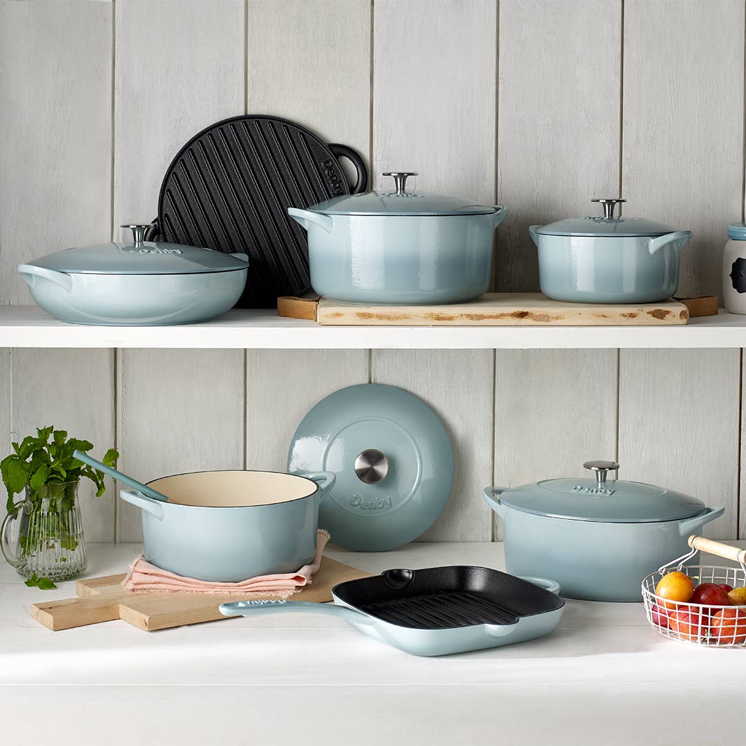 Say hello to your new kitchen best friend—the Denby Pavilion Dutch oven in gorgeous blue! This 4.2L cast iron wonder is ready for anything you throw at it, from slow-cooked stews to crusty bread baking adventures.