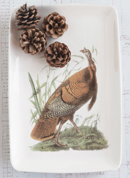 This platter is perfect for any fall meal or thanksgiving dinner. Made out of stoneware, this platter features a vintage reproduction turkey that fits effortlessly with the theme of thanksgiving. Whether used for fall dinner parties or your Thanksgiving meal, this plate is sure to catch the eye of friends and family.