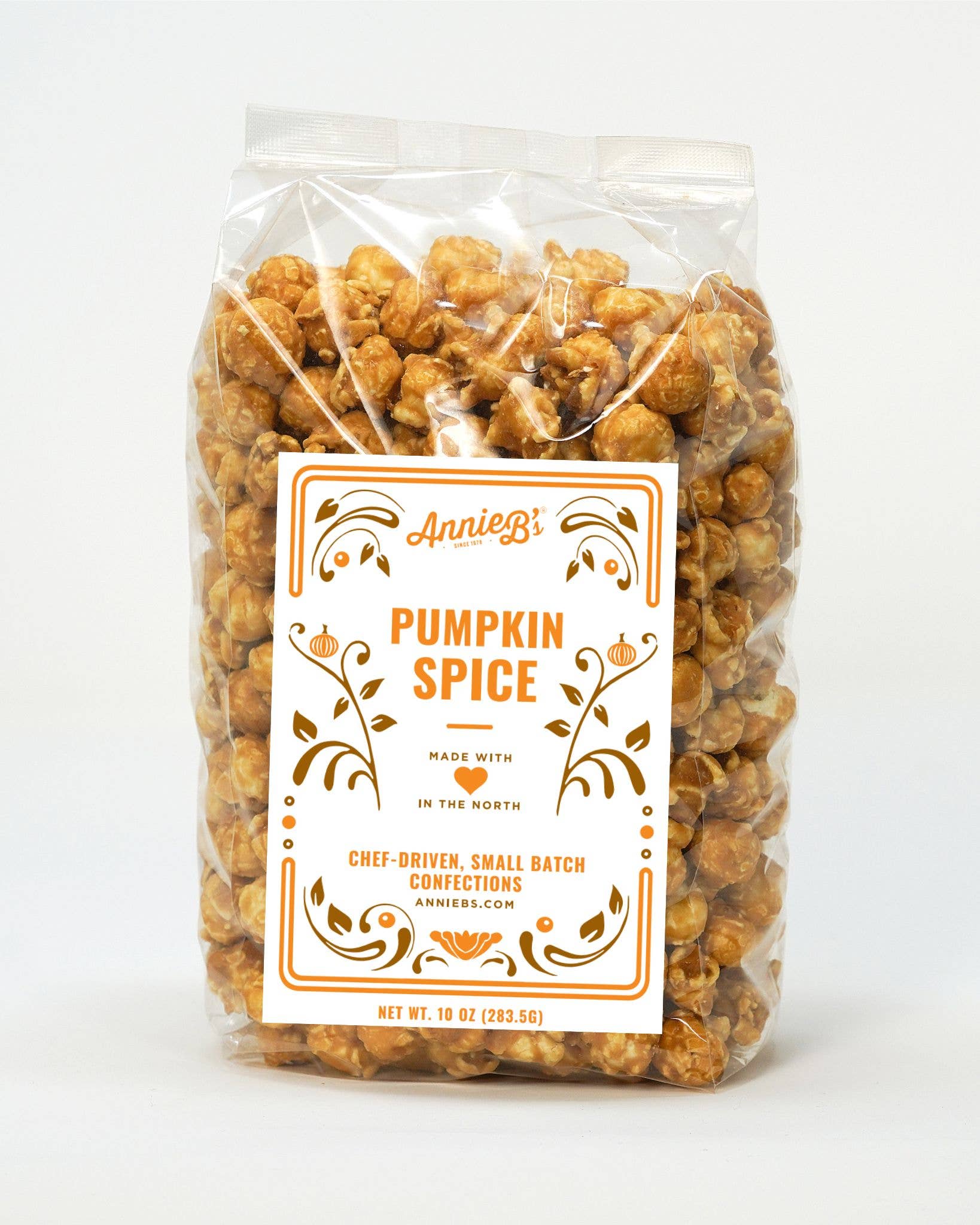 This bag includes 10 ounces of Pumpkin Spice Caramel Popcorn.