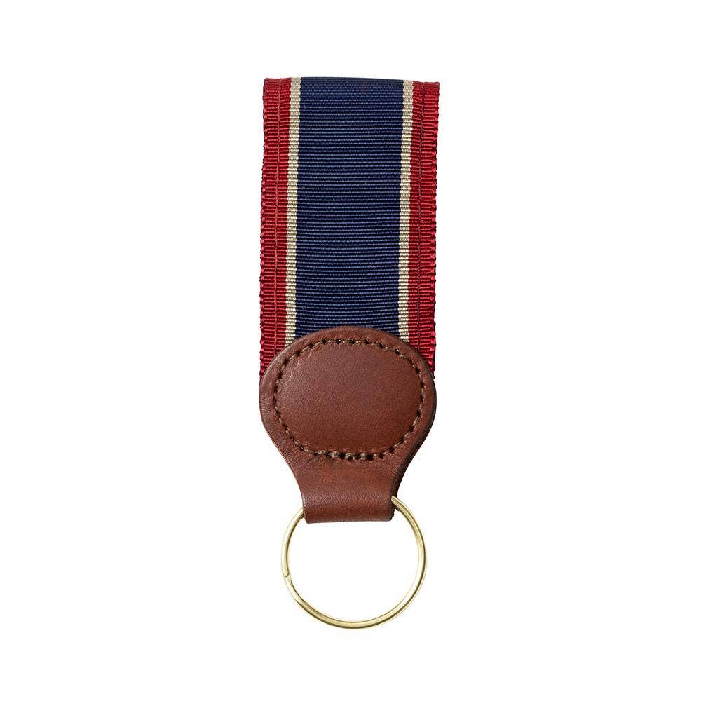 Barrons-Hunter - Navy, Tan & Burgundy Grosgrain Ribbon Key Fob