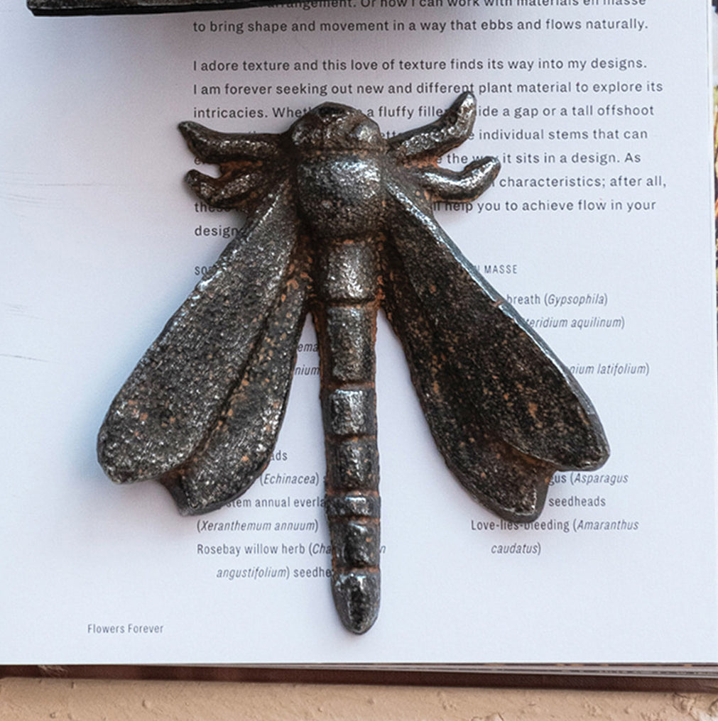 This cast metal dragonfly with brown finish is a beautiful accent decor for any home. It brings a touch of nature and whimsy to any space with its dragonfly shape that has intricate wings and body. The cast metal material is sturdy and durable, and the brown finish gives it a rustic and natural look.