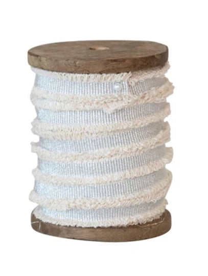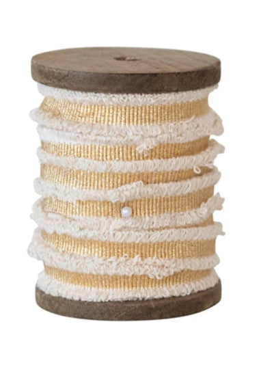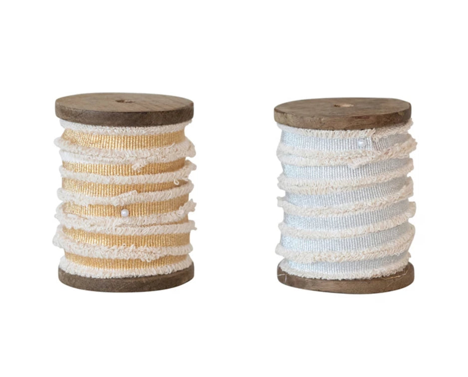 Cotton Ribbon w/ Metallic Thread & Fringe on Wood Spool