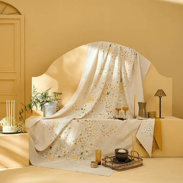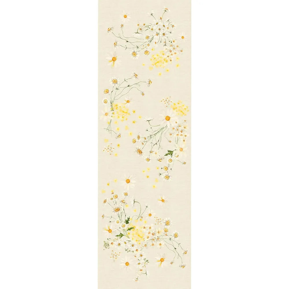 The Daisy Chanvre Tablecloth is designed in France by our team of artisans and printed with bundled daisy motifs in soft cream and yellow tones. Crafted from a cotton-linen blend that provides durability with a natural feel, it brings a warm, inviting charm to any dining setting.