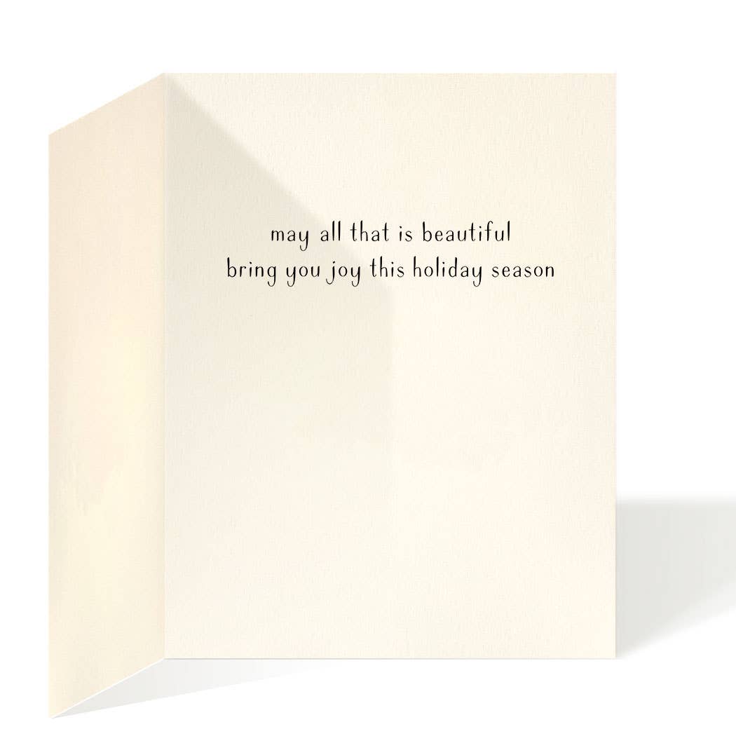 It's always a welcome sight to see black-capped chickadees. Here, our chirpy little friends send seasonal greetings. Printed on a beautiful stock, our Occasion Cards feature Felix's watercolor drawings and his handwritten font. The quality envelope is the finishing touch. Available in boxed sets of 8 cards as well under a separate listing. Seasons greetings and happy holidays from this pair of black-capped chickadees perched on a pine or evergreen branch. Perfect for Season’s Greetings, Holiday, or Christmas greeting cards. Front: season's greetings Inside: may whatever is beautiful, meaningful, and brings you happiness, be yours this holiday season 4.25 x 5.5 inches folded. Ultra-premium, lightly-textured acid-free paper stock. Packaged in a cello sleeve.