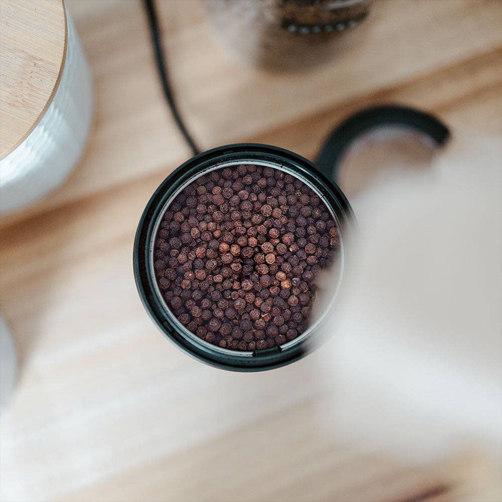 The BREMEN Blade lets you control the grounds with pulse or continuous grind options. Just tap or hold down the power button for 5-8 seconds for a coarse grind (French press), 10-12 seconds for a medium grind (pour over) and 15-20 seconds for a fine grind (espresso).