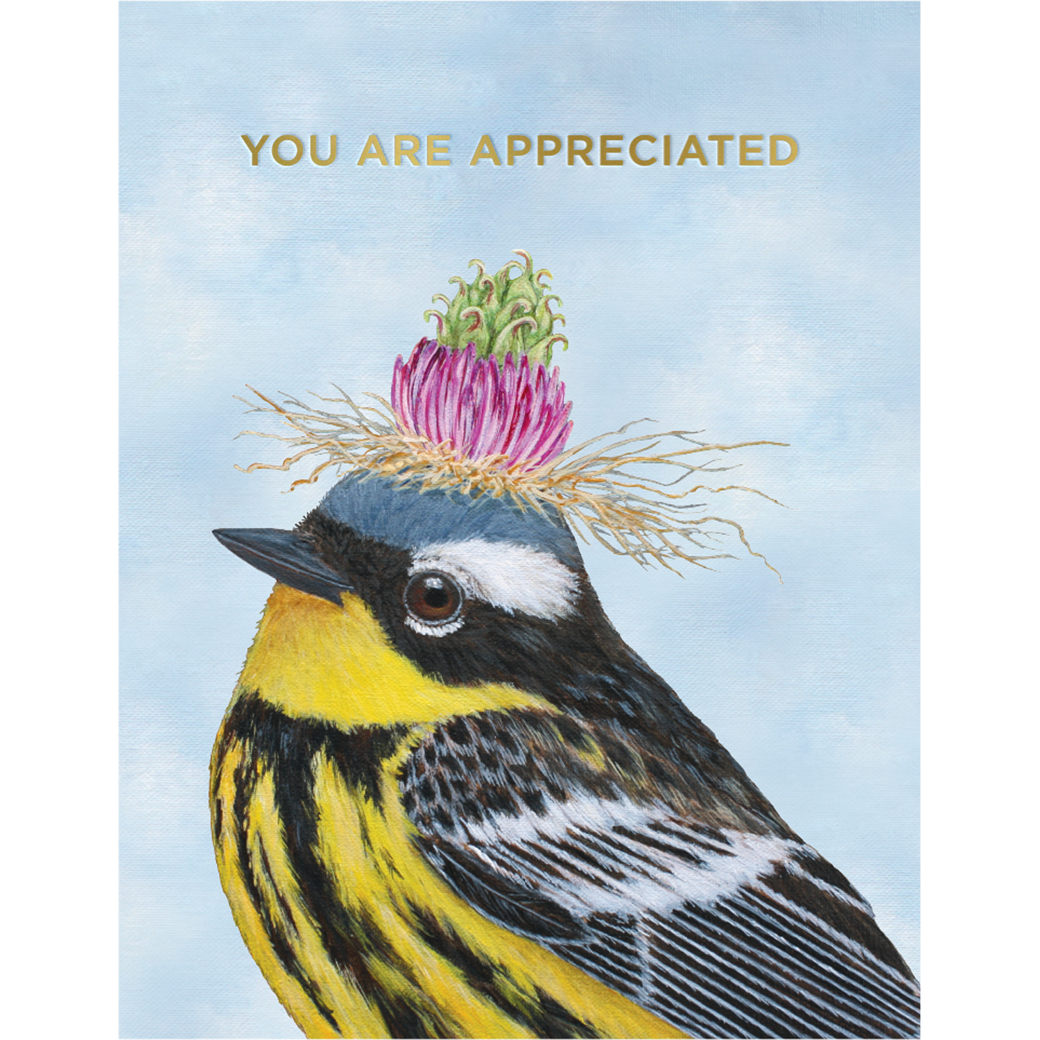 While on a walk, a thought occurred to artist Vicki Sawyer: if birds could build nests, then they could make hats! Guided by her whimsical musings and inspired by the natural world, Vicki brings her brilliant observations to her paintings with joy and humor, perfect for any occasion on your list.