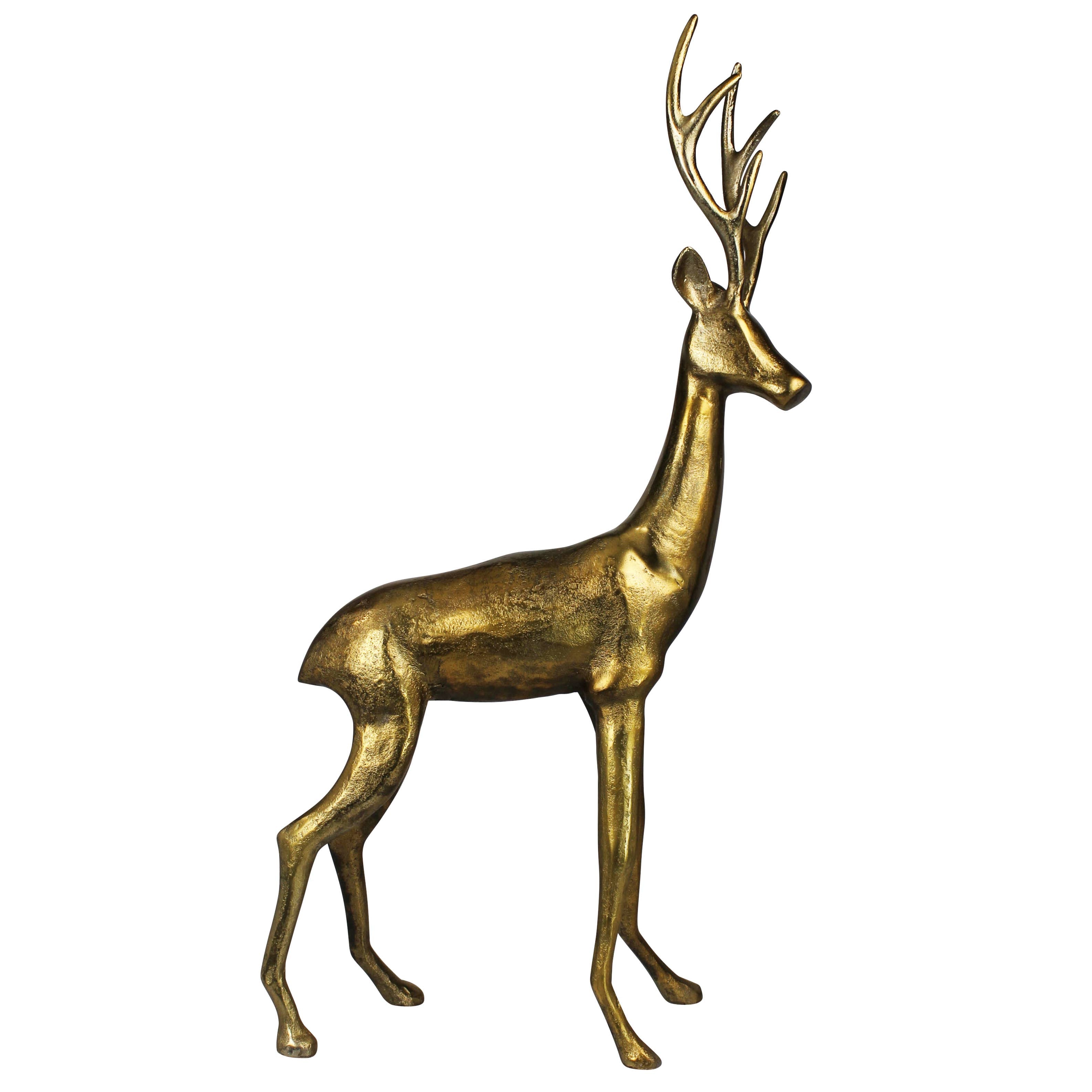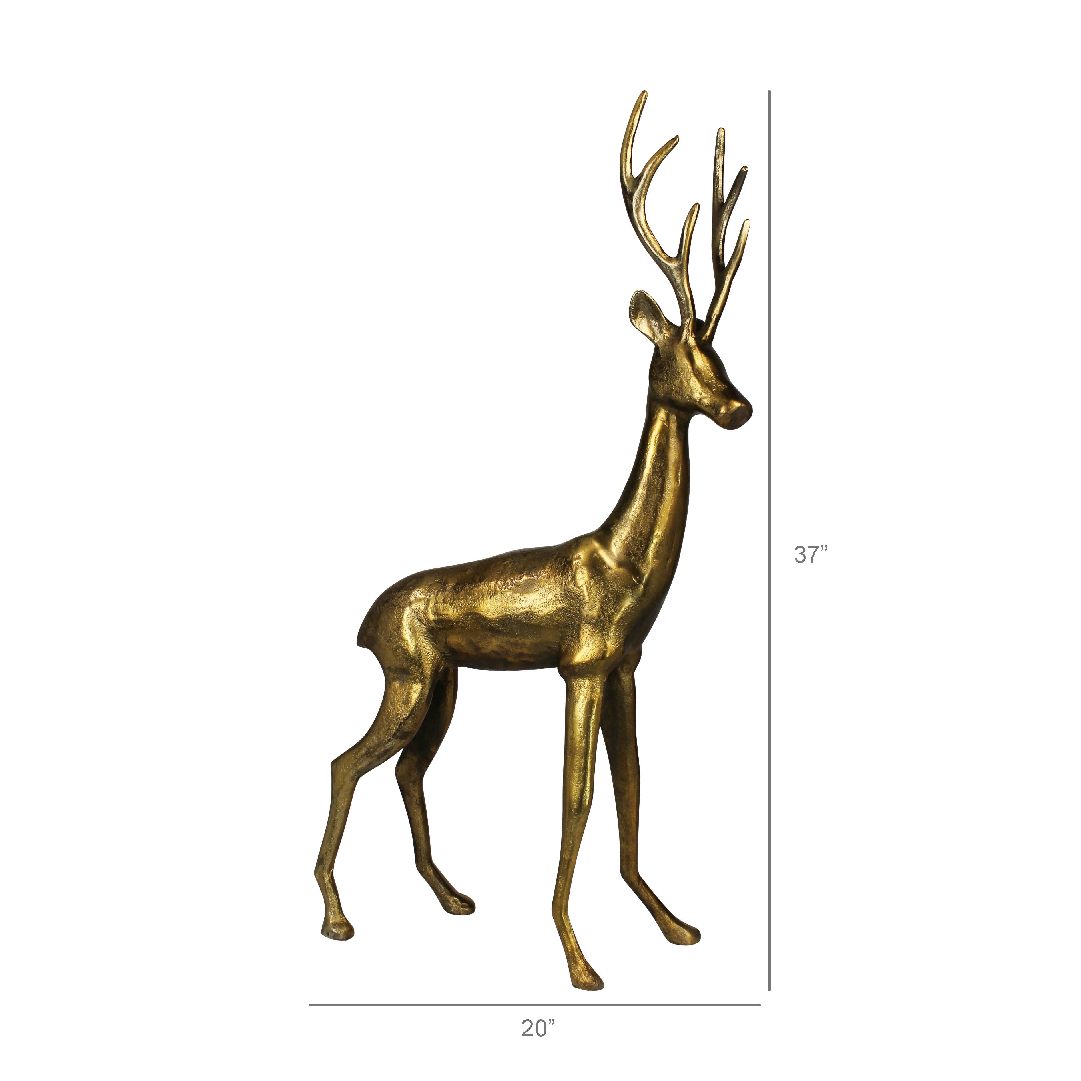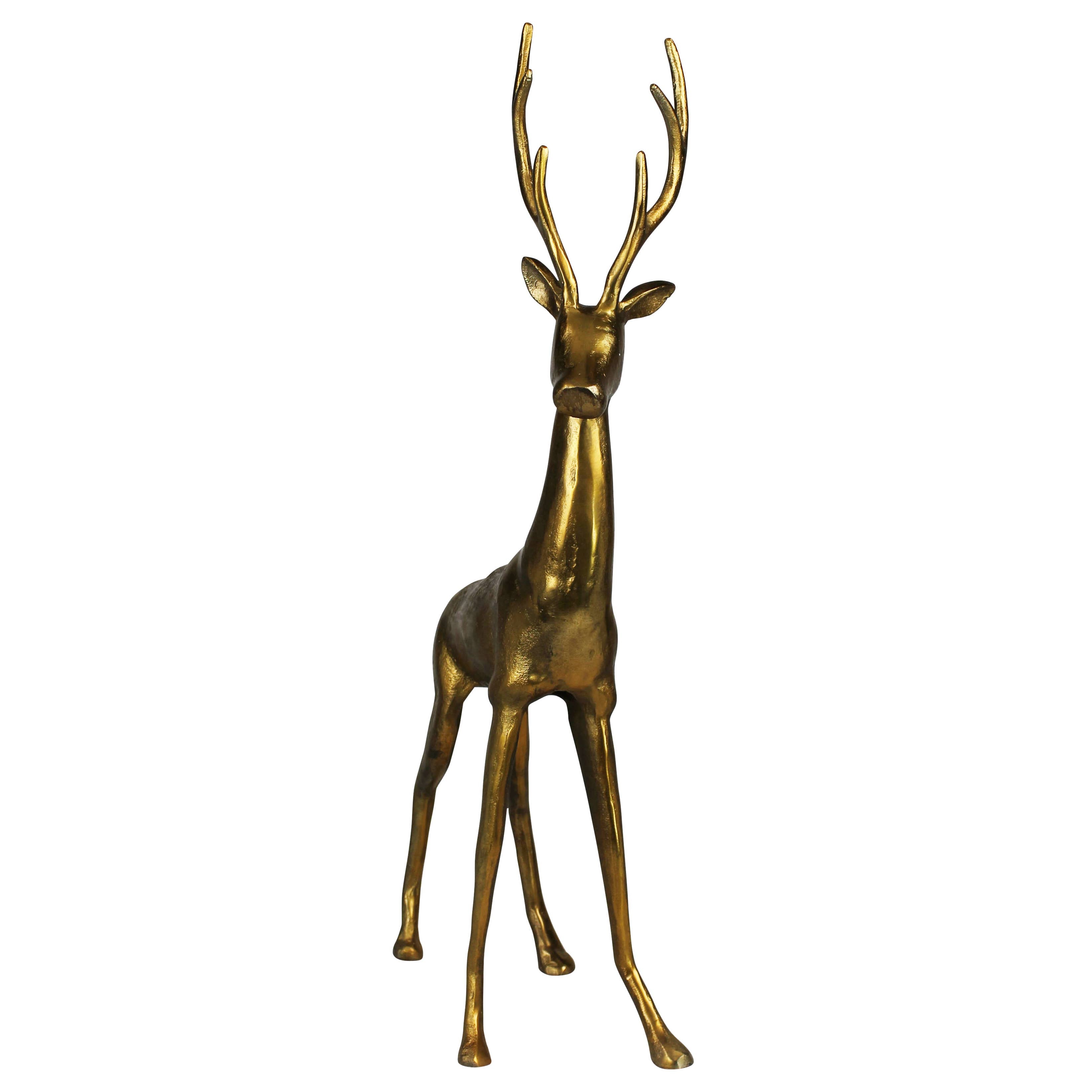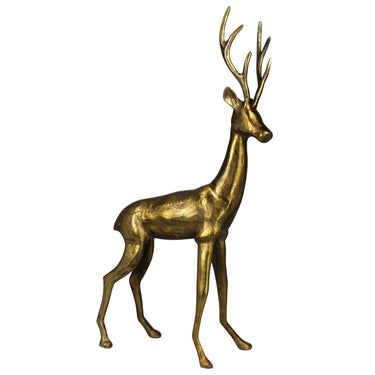 A large stag sculpture featuring a refined brass finish, blending contemporary boldness with classic elegance. Its detailed craftsmanship and regal posture create a captivating centerpiece, ideal for elevating the ambiance with a sense of luxury and refinement.