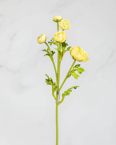 This real touch yellow ranunculus is a faux botanical wonder that effortlessly infuses your space with a touch of sunny delight. Crafted with exceptional artistry and employing cutting-edge real-touch technology, this lifelike beauty mirrors the splendor of real ranunculus flowers.