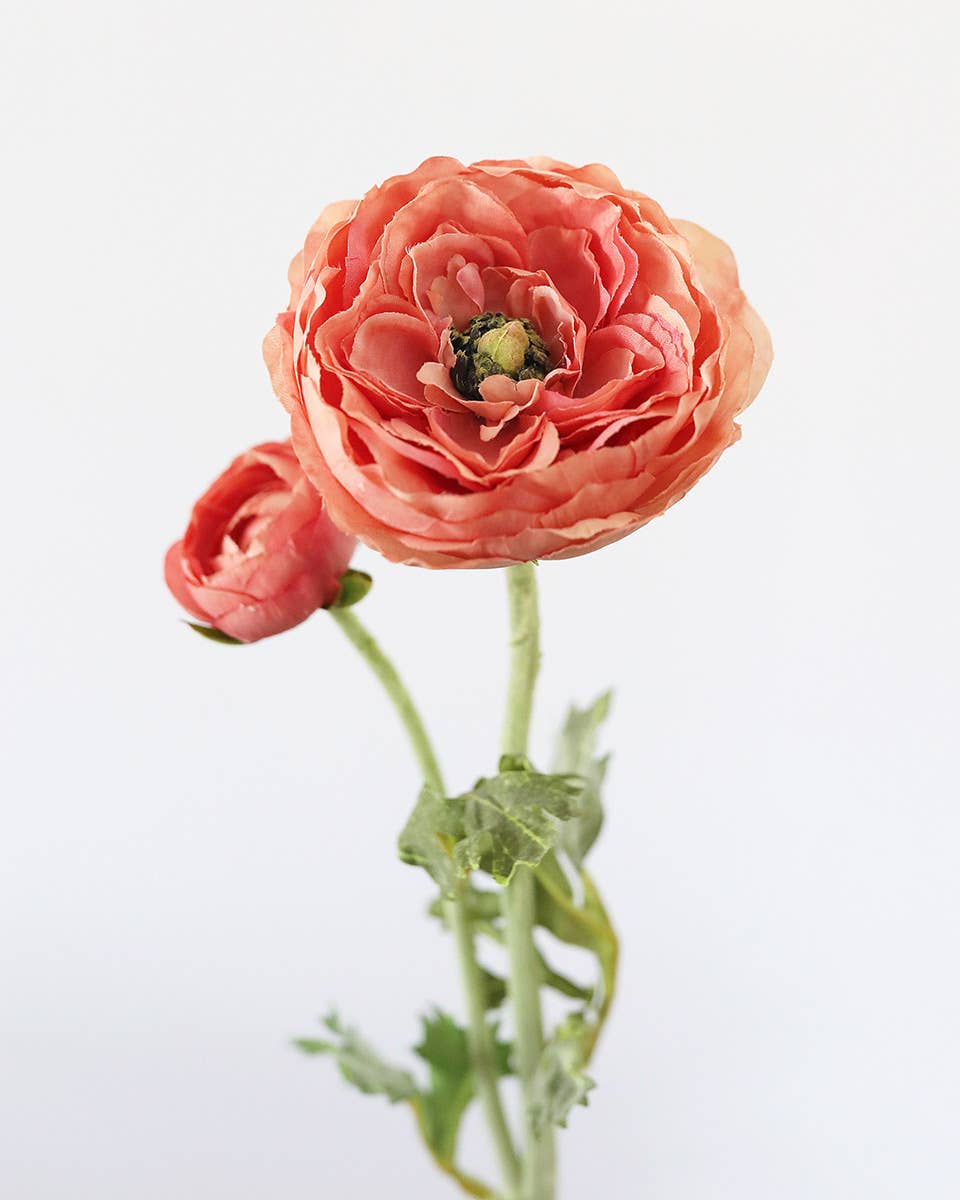 This salmon pink faux ranunculus captures the enchanting beauty of real ranunculus blooms. Each faux flower showcases a striking salmon pink hue, radiating charm and elegance. Our artificial ranunculus mirror the fine textures and intricate layers of their natural flower counterparts.