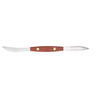 Made from stainless steel and natural wood; measures 8 x 0.5 x 0.5-inches