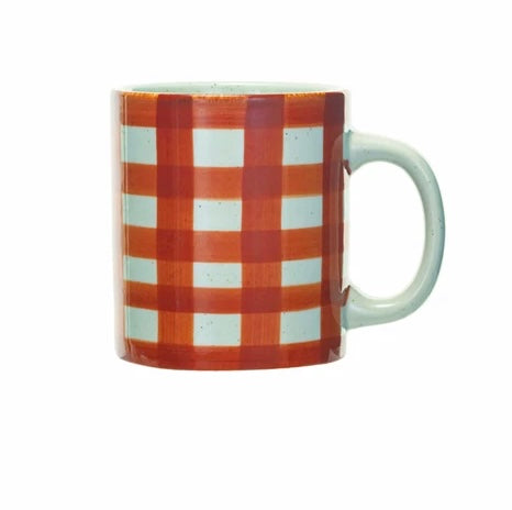 Indulge in a warm drink with these hand-crafted mugs with delicate striped designs. Constructed from strong stoneware material and showcasing a subtle speckled finish.