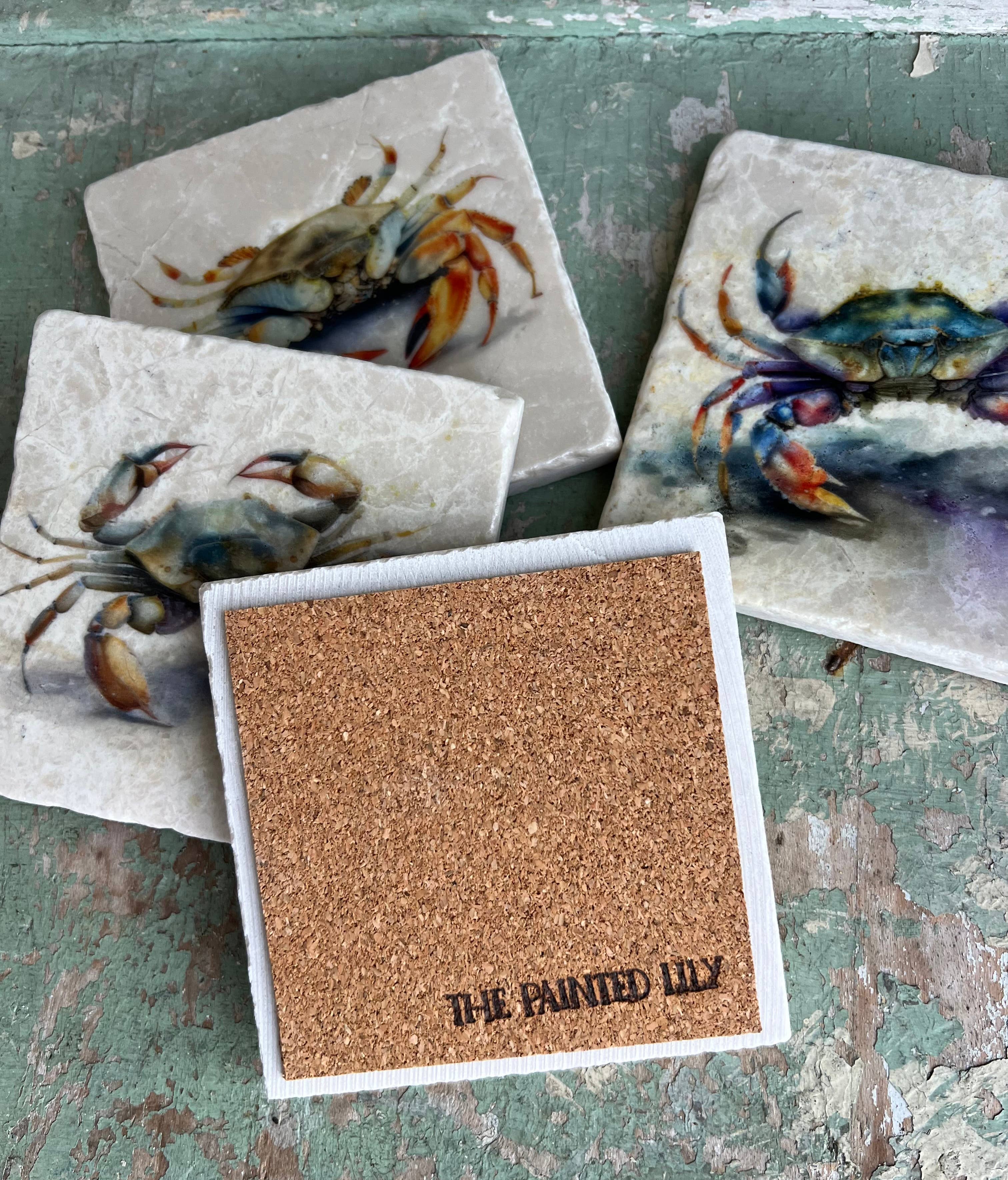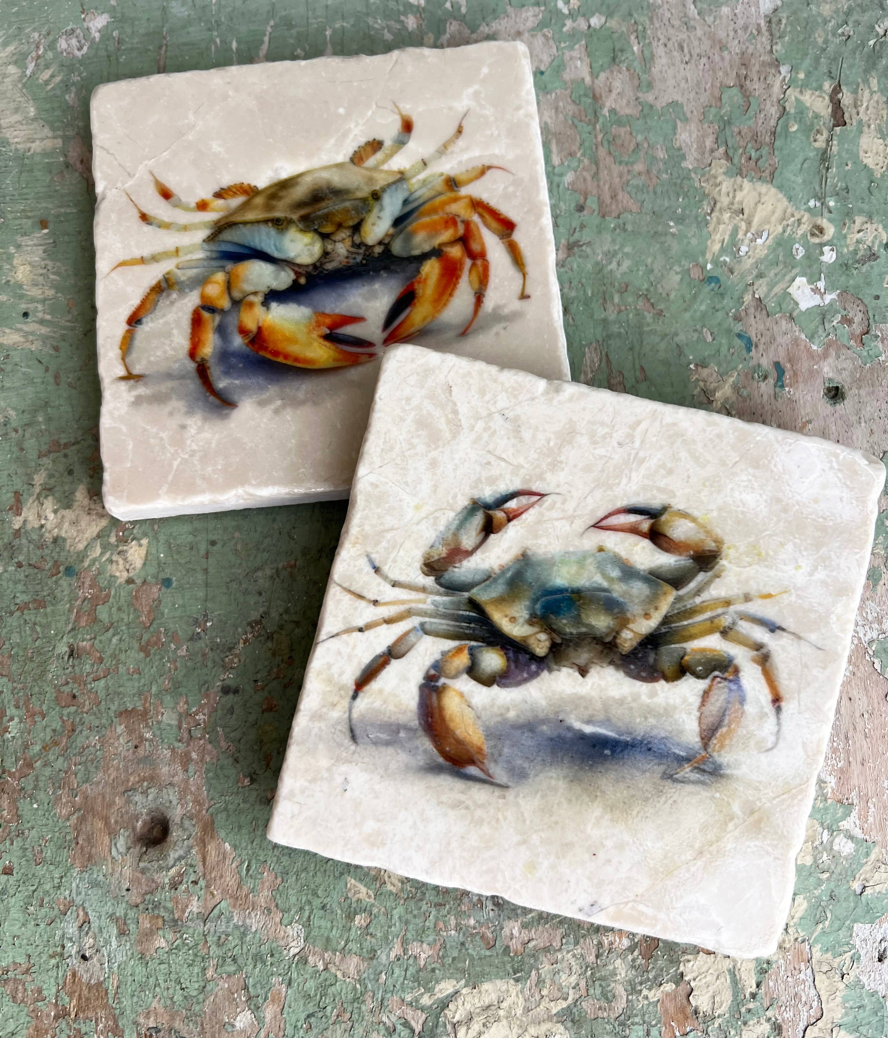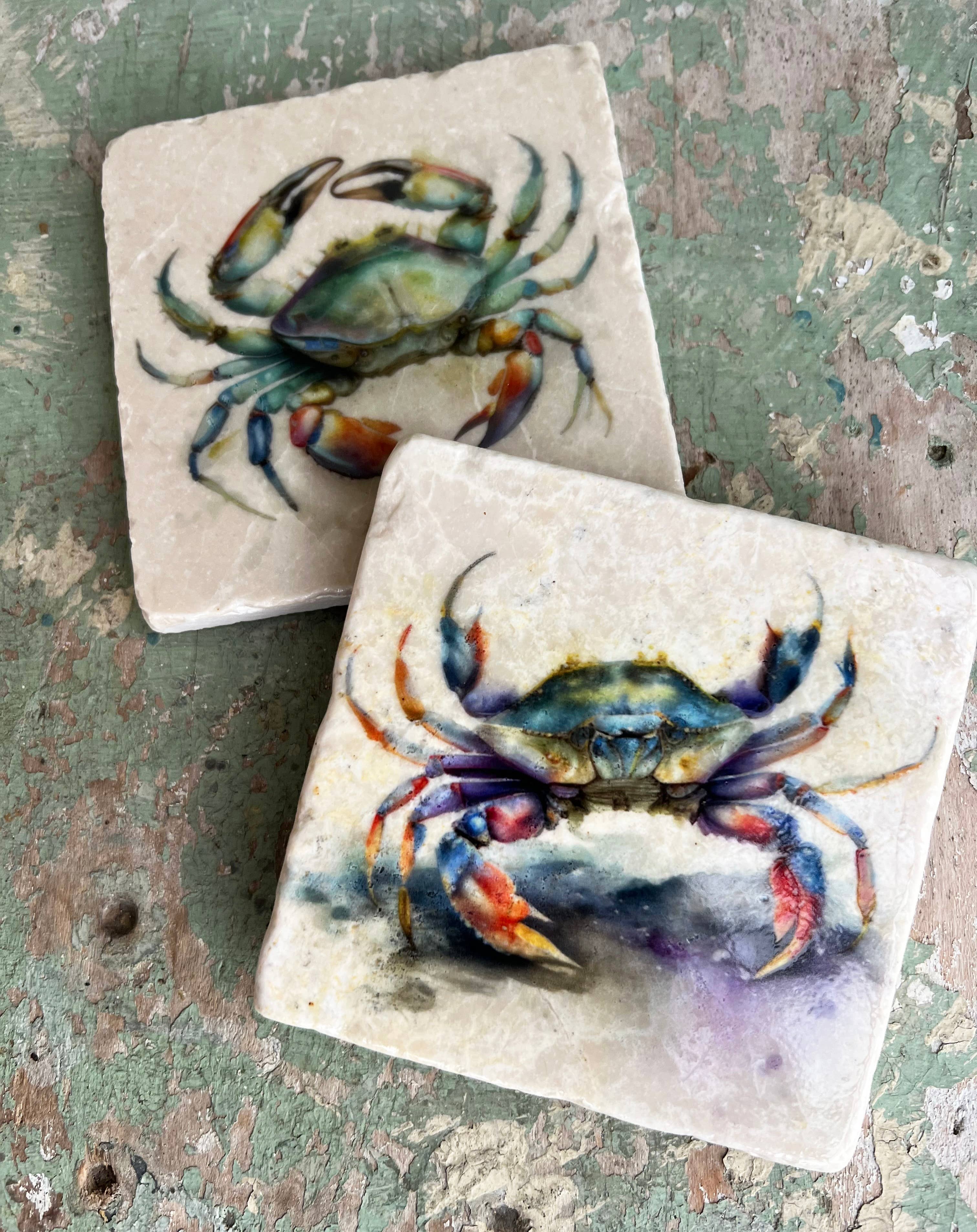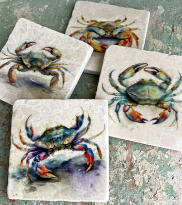 The Crab stone coasters are made using tumbled marble tile and antique delft tile images. Made to last a lifetime, these coasters are incredibly durable and good for use with hot and cold beverages.