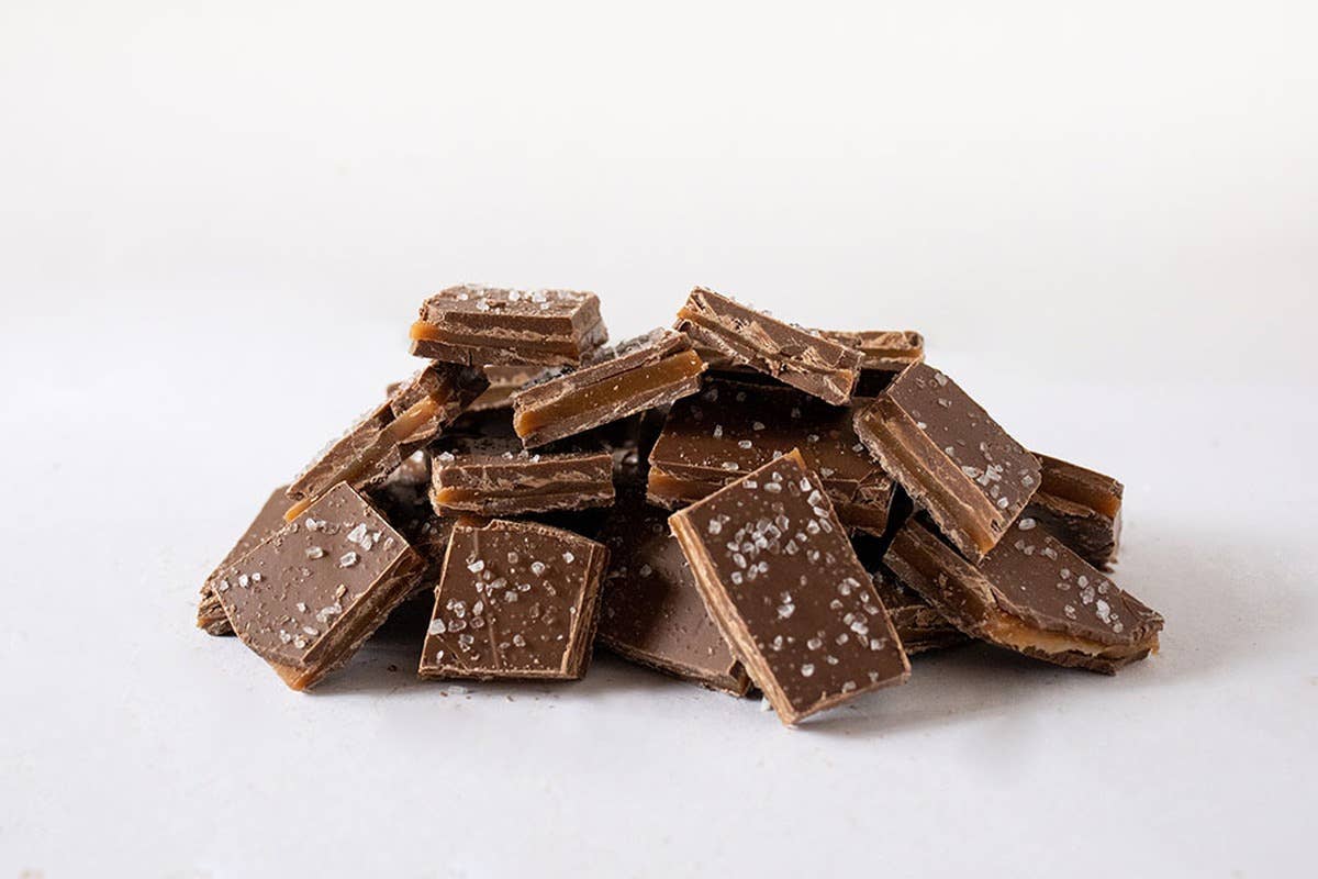 Our handmade, chewy caramel sandwiched between layers of creamy, rich milk chocolate; sprinkled with sea salt for a heavenly taste.