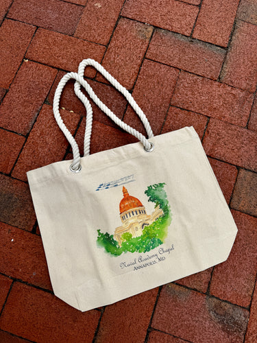 Celebrate your trip to the Naval Academy Chapel with this expertly crafted tote bag. Designed to carry all your keepsakes and essentials, its roomy interior ensures you have ample space for everything you collect during your visit.